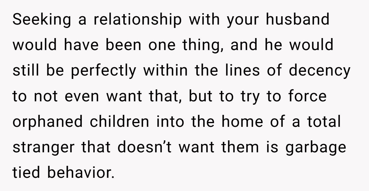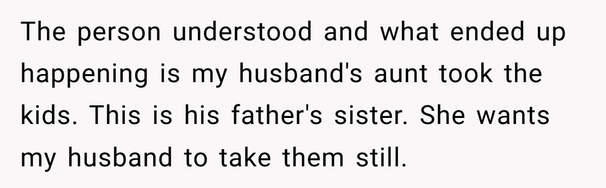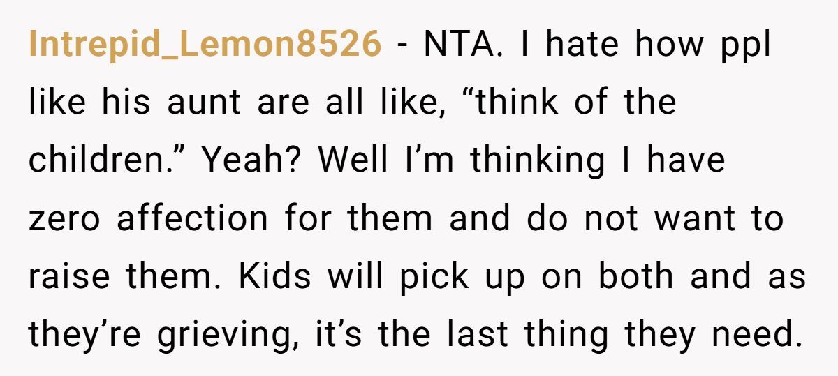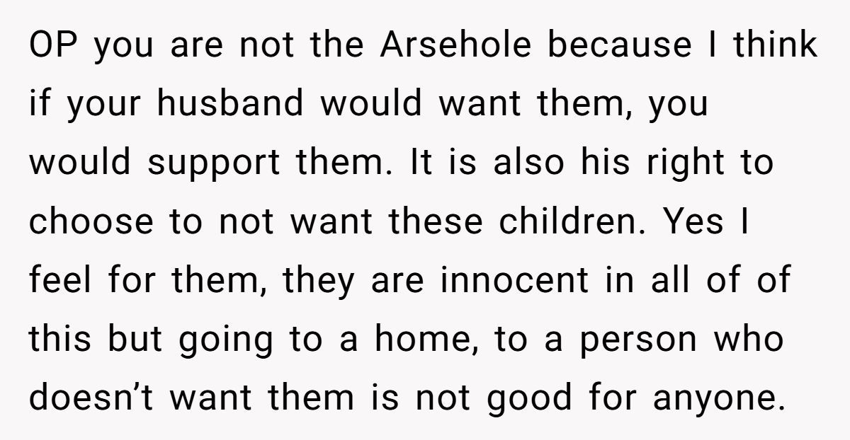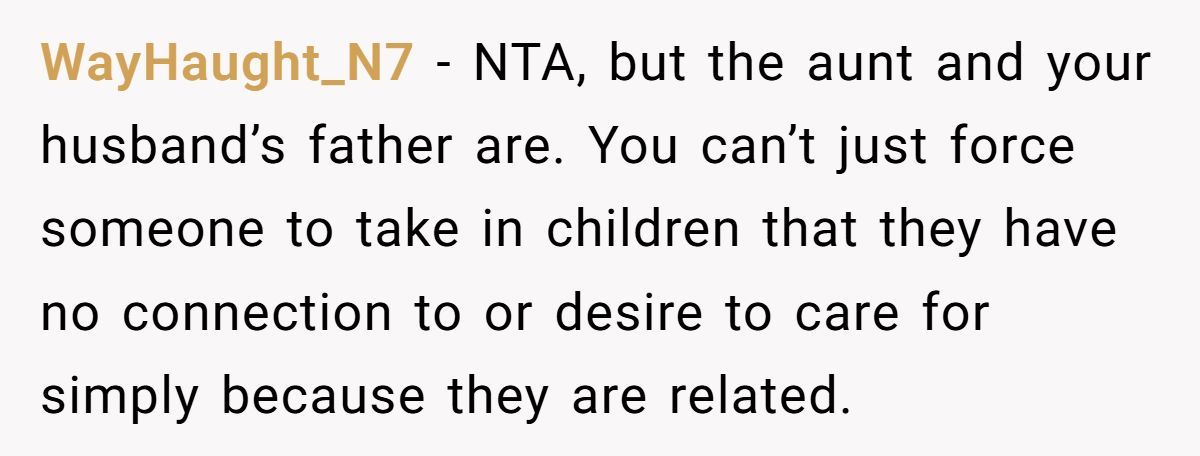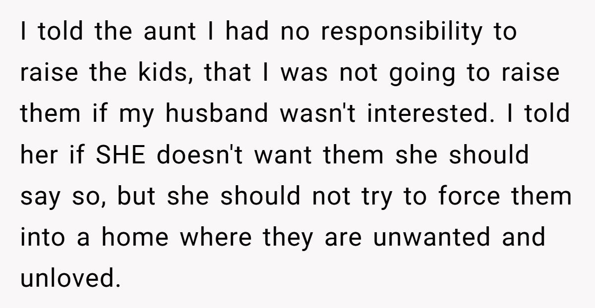 It’s tragic for the kids—but worse to place them where they aren’t wanted. OP stood firm, said no, and saved her mental well-being.